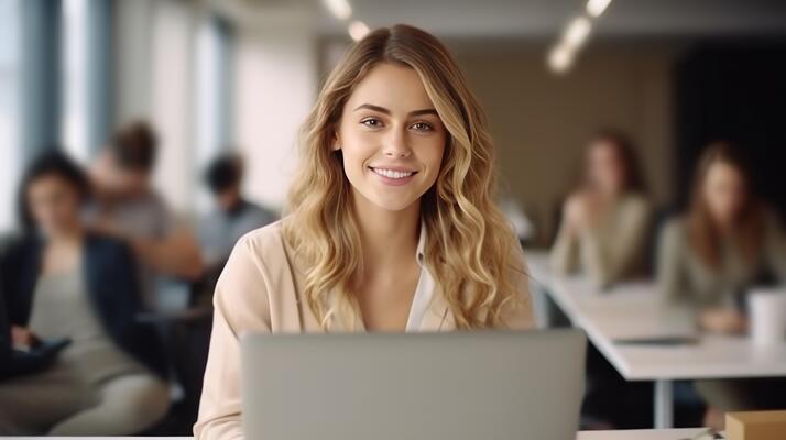 happy-girl-standing-in-creative-office-illustratio